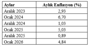 Şimdi gelelim aralık ve ocak ayları TÜFE verilerine (kaynak: TÜİK, Tüketici Fiyat Endeksleri):