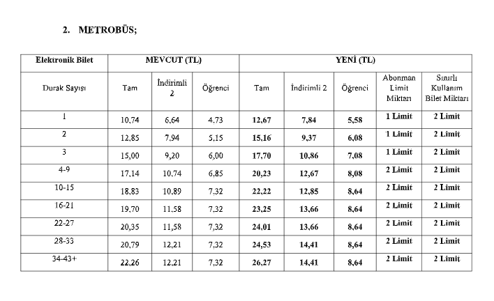 * Metrobüste en uzun mesafede tam bilet 26,25 lira,