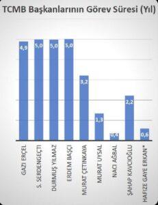 Sonuç olarak Gaye Erkan sadece 8 ayla, görevde 4 ay kalan Naci Ağbal’ın ardından en kısa süre TCMB Başkanlığı yapan isim oldu.