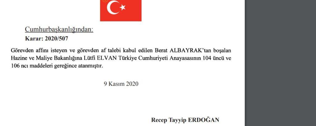 Berat Albayrak’ın istifası Resmi Gazete’de bu şekilde yer almıştı.