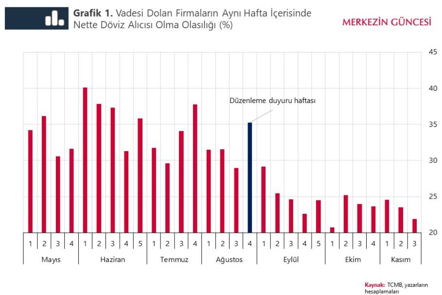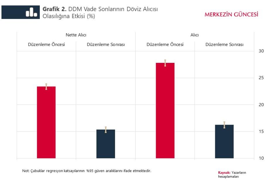 Akgündüz ve Seven’in analizinde DDM vadesi dolan şirketlerin döviz alıcısı olma ihtimali örneklemdeki diğer şirketlere göre ortalamada yüzde 27,8 daha yüksekken bu oranın 28 Ağustos sonrasında yüzde 16,3 seviyesine gerilediği belirtildi.