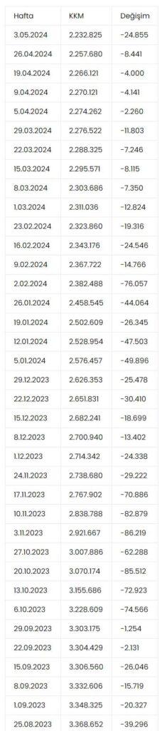 KKM Merkez Bankası’nın (TCMB) enflasyon raporu sunumunda da gündeme geldi. TCMB Başkanı Fatih Karahan son sekiz ayda TL mevduat payının yaklaşık yüzde 32’den yüzde 44’e yükseldiğini, KKM’nin payının ise yüzde 26’dan yüzde 14’e gerilediğini söyledi.