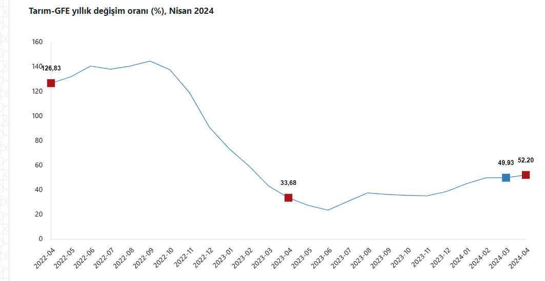 Bina bakım masrafları nisanda çiftçinin canını yaktı. Tarımsal girdi maliyetlerinde artış devam ediyor. Türkiye İstatistik Kurumu (TÜİK), Nisan 2024 dönemine ait Tarımsal Girdi Fiyat Endeksi’ni (Tarım-GFE) açıkladı. Tarım-GFE’de (2020=100), 2024 yılı nisan ayında bir önceki aya göre yüzde 1,72 artış, bir önceki yılın aralık ayına göre yüzde 14,61, bir önceki yılın aynı ayına göre yüzde 52,20 ve on iki aylık ortalamalara göre yüzde 39,08 artış gerçekleşti. Martta ise bu artış ay bazında yüzde 1,16, yıl bazında ise yüzde 49,93 oldu.