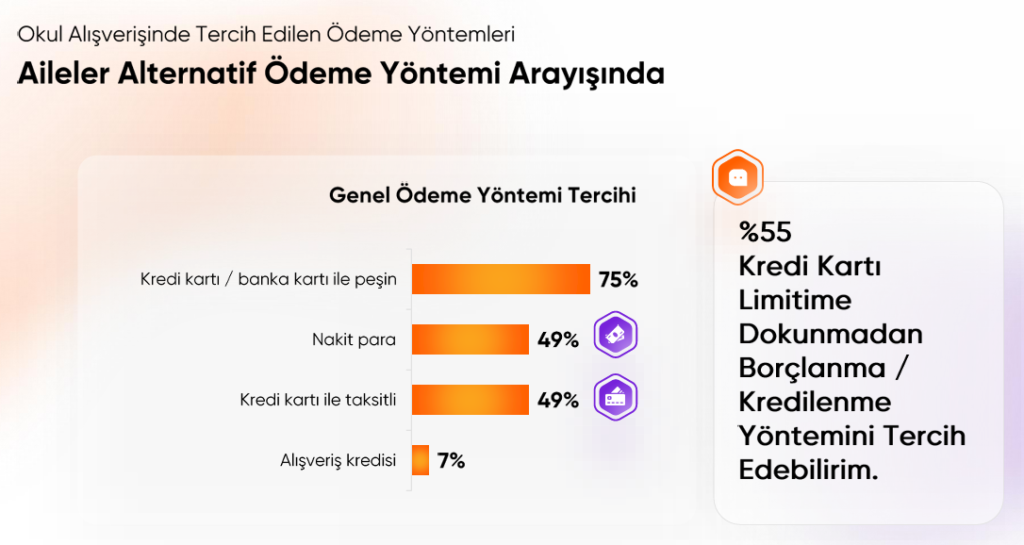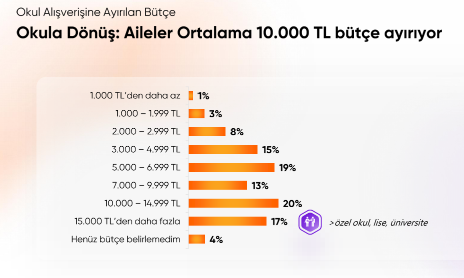 Ender Özgün okul alışverişinde kararın fiyat-performans, kalite ve ürün güvenliği odağında şekillendiğinin altını çizerek “Bu süreçte ailelerin en önemli gündem maddeleri yüzde 58’lik oranla ‘fiyat değişimlerine karşı önlem alabilmek’ olarak karşımıza çıkıyor. Bunu yüzde 37 ile ‘kaliteli ürünlere erişmek’ ve yüzde 35 ile ‘bütçelerini kontrollü ve idareli kullanmak’ takip ediyor” dedi. Araştırmaya katılanların yüzde 55’inin kredi kartı limitine dokunmadan borçlanma veya kredilenme yöntemini tercih ettiğine dikkat çeken Özgün bunun için “üç ay sonra öde” kampanyasını başlattıklarını dile getirdi. Araştırmaya katılan ailelerin okul alışverişine ortalama 10.000 TL bütçe ayırdığını eden Özgün diğer öne çıkan sonuçları şöyle aktardı: