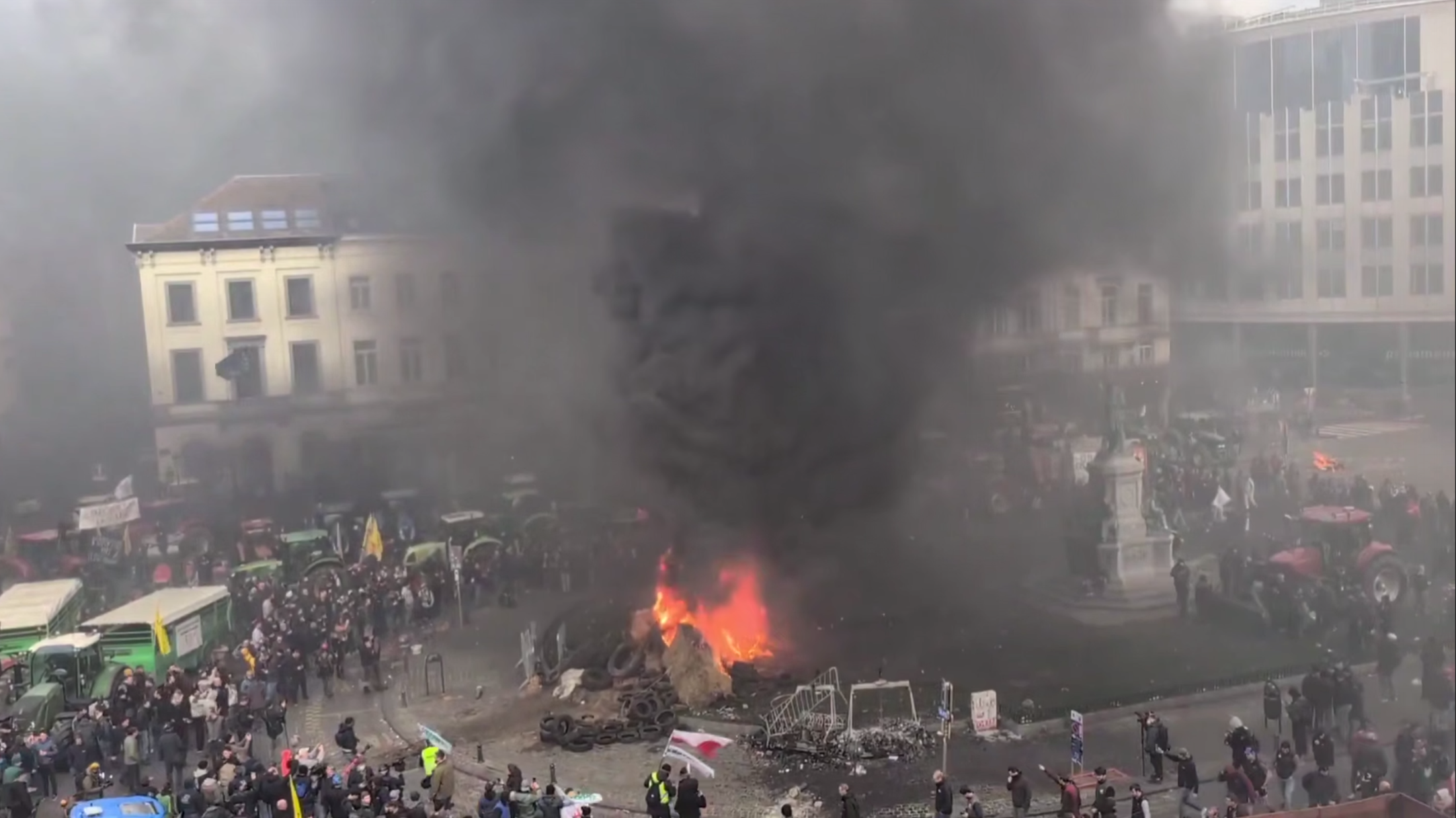 Protestocular toplanan polisin üstüne traktör sürdü, ürünlerini Avrupa Parlamentosu’na doğru fırlattı.