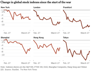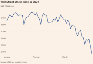 Wall Street’in gösterge endeksi S&P 500, savaşın başlamasından bu yana yaklaşık %7,4 düştü ve Eylül 2022’den bu yana en büyük aylık düşüşünü yaşıyor. Teknoloji ağırlıklı Nasdaq Bileşik Endeksi Perşembe günü düzeltmeye girdi ama Ekim ayındaki zirvesinden %10’dan fazla aşağıda.