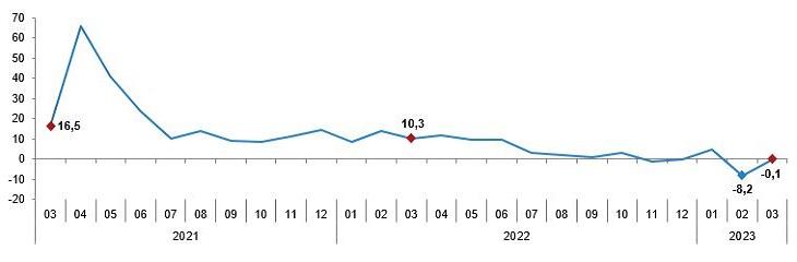 Sanayi üretim endeksi yıllık değişim oranları (%), Mart 2023