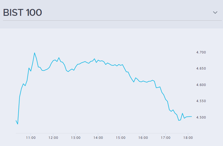Seçimin ikinci tura kalması Borsa İstanbul’u da kötü vurdu. Geçen haftayı 4 bin 795 puandan kapatan BİST 100 Endeksi açılıştan hemen sonra banka hisselerinin öncülüğünde yüzde 6.38’lik değer kaybıyla 4 bin 489 puana inince devreye “devre kesiciler’’ girdi. Birçok hissede işlemler soluklanmaları için durduruldu. Ardından yönünü yukarı doğru çeviren BİST 100 Endeksi saat 15.00 sularında kayıpların bir kısmını telafi ederek geçen haftaki kapanışın yüzde 2.83 altında seyrederken lokomotif kağıtlara gelen satışlarla yıkıldı. BİST 100 Endeksi günü hafta sonu kapanışının yüzde 6.14 altında 4 bin 501 puandan tamamladı.