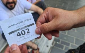 Beyoğlu Vergi Dairesi önünde saat 13.30’da kuyrukta olan bir vatandaş sıra numarasını gösteriyor. Fişin alt kısmında ise bekleyen kişi sayısının 231 olduğu yazıyor.