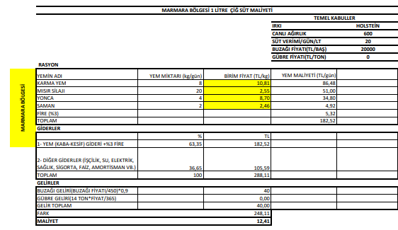 Ulusal Süt Konseyi’nin yaptığı hesaplamaya göre, 1 litre sütün maliyeti mayıs ayı itibarıyla 12,41 TL’yi buluyor. 10,81 TL ile karma yem maliyette en büyük kalemi oluştururken, onu 8,70 TL ile yonca, 2,46 TL ile saman, 2,55 TL ile de mısır silajı izliyor.