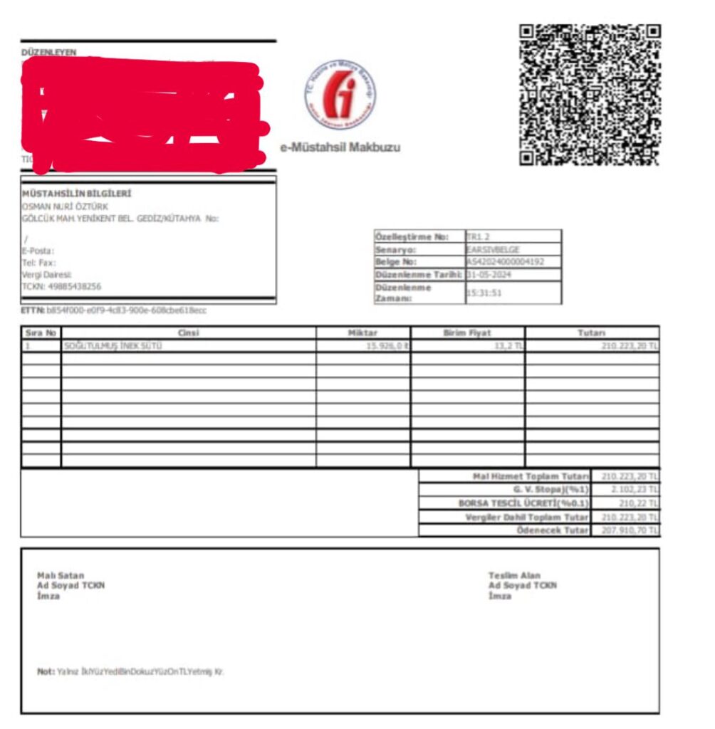 Osman Nuri Öztürk, soğutma sistemi olduğu için sütün litresini 13,40’tan vermiş. Soğutucusu olmayan üreticilerin sütüne ödenen para 12,80 liraya kadar düşüyor.