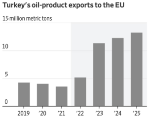 The Wall Street Journal’a gore Türkiye’nin Rusya’dan petrol ürünleri ithalatında savaştan sonra gerçek bir patlama yaşanıyor.