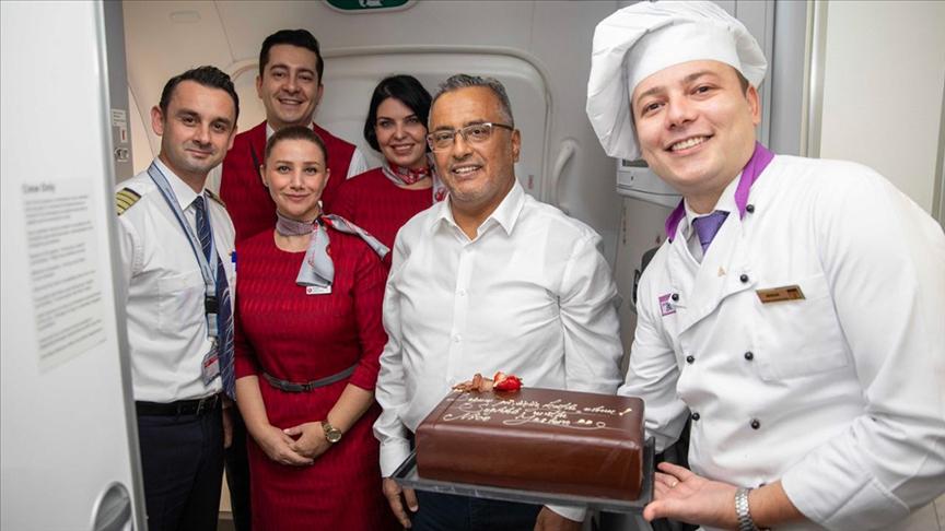 THY’nin İstanbul’dan Detroit’e olan ilk seferi Ahmet Bolat’ın doğum günü olan 15 Kasım’a denk gelince uçakta kutlama yapıldı.