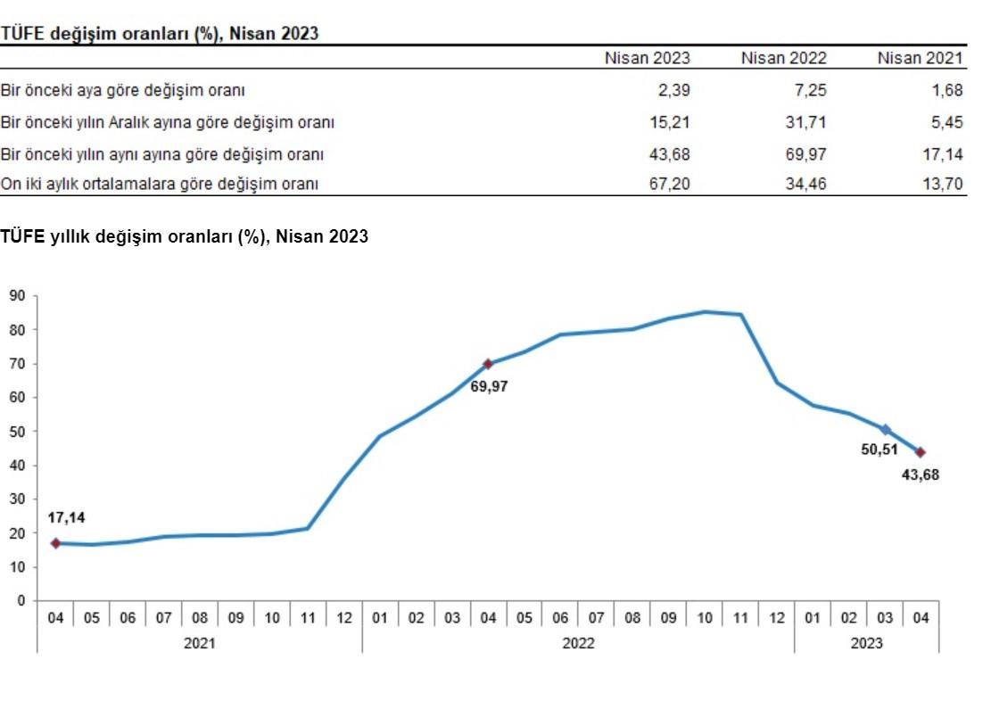 Türkiye İstatistik Kurumu (TÜİK), nisan ayına ilişkin enflasyon verilerini yayımladı. Konuya ilişkin hayli pembe bir tablo çizen TÜİK’in aksine ENAG’ın (Enflasyon Araştırma Grubu) verileri “resmi enflasyonu” hem aylık hem de yıllık bazda ikiye katladı. TÜİK’in verilerine göre nisan ayında tüketici fiyat endeksi bir önceki aya göre yüzde 2,39 arttı. Veriler nisan ayıyla birlikte fiyatların 52 aydır artmakta olduğunu gösterdi.
