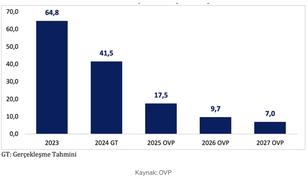Hazinenin ihraç ettiği yurtdışı tahvilin yüzde 40’ının ABD, yüzde 36’sının Birleşik Krallık, yüzde 11’inin diğer Avrupa ülkeleri, yüzde 9’unun Türkiye, yüzde 4’ünün Orta Doğu ve diğer ülkelerdeki yatırımcılara satılması ilginin kaynağının belli bir bölge olmadığını gösteriyor. Orta Vadeli Programın açıklandığı basın toplantısında Cumhurbaşkanı Yardımcısı Cevdet Yılmaz 2025 yılında enflasyonun yüzde 17,5’e gerileyeceğini ve program döneminin sonunda da yüzde 7’ye düşeceğini ifade etmişti.