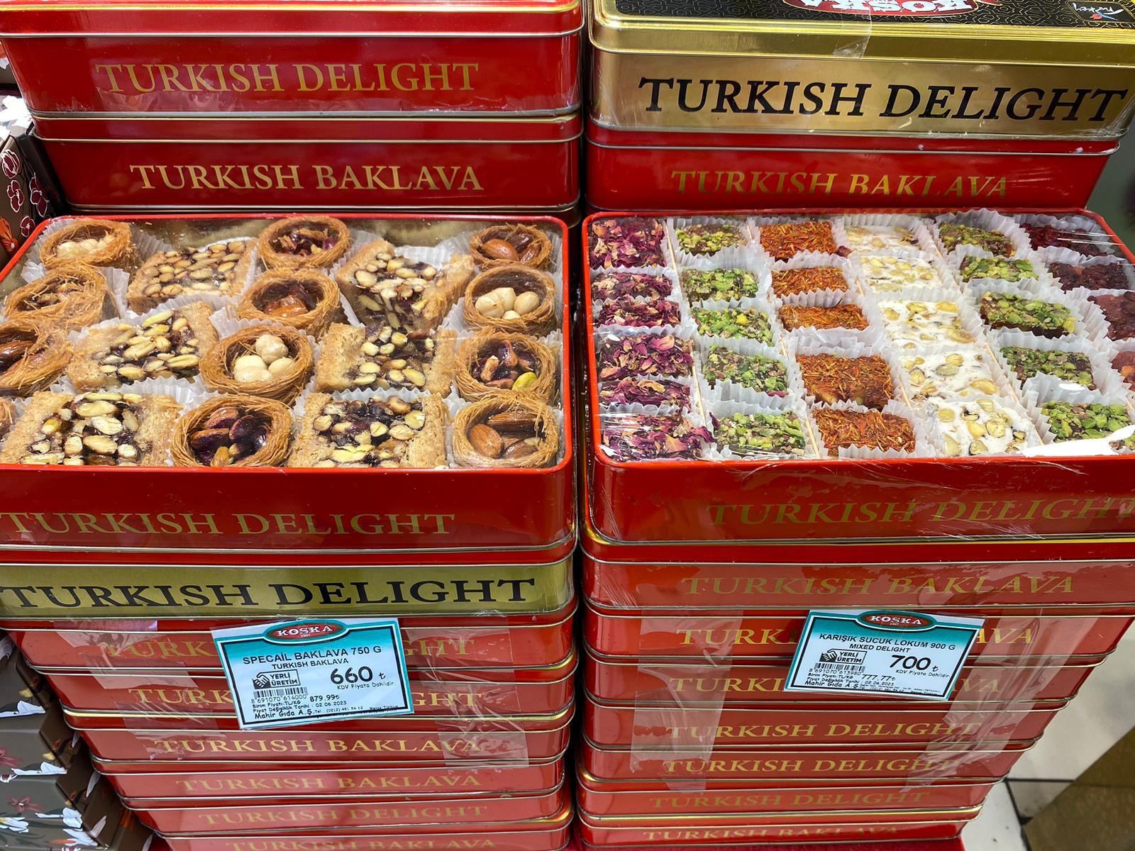 Turistlerin kilolarla alışveriş yaptığı sözüne biraz sonra girdiğimiz tarihi lokumcu dükkanında 60 kiloluk lokum siparişiyle bizzat tanık oluyoruz. Girdiğimiz iki ünlü lokumcuda da baklava fiyatları 600-700, lokum fiyatları ise 230-653 lira civarında. Bu fiyatlarla Kurban Bayramı’nda misafirlerine lokum ikram edecek kişi sayısının oldukça az olacağını söylemek zor değil.