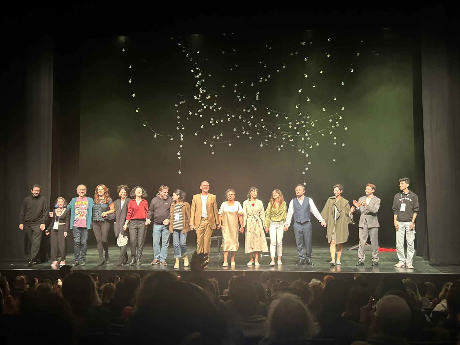 Yaklaşık 100 dakikalık oyunun onunda -prömiyer adetidir- ekip tek tek alkışlarla sahneye çıktı. Sahnede oyunun yapımcılarından Tolga Karaçelik de vardı. Ancak selam verme kısmını kısa kesmek istediği çok belliydi. Aslına bakarsanız selam verme seramonisi o kadar çabuk bitti ki yanımdaki beyefendi “E bir daha gelmeyecekler mi bi alkışlasaydık?” dedi. İzleyici enerjisini alkışlayarak atmak istiyordu mu desek, bilemedim.