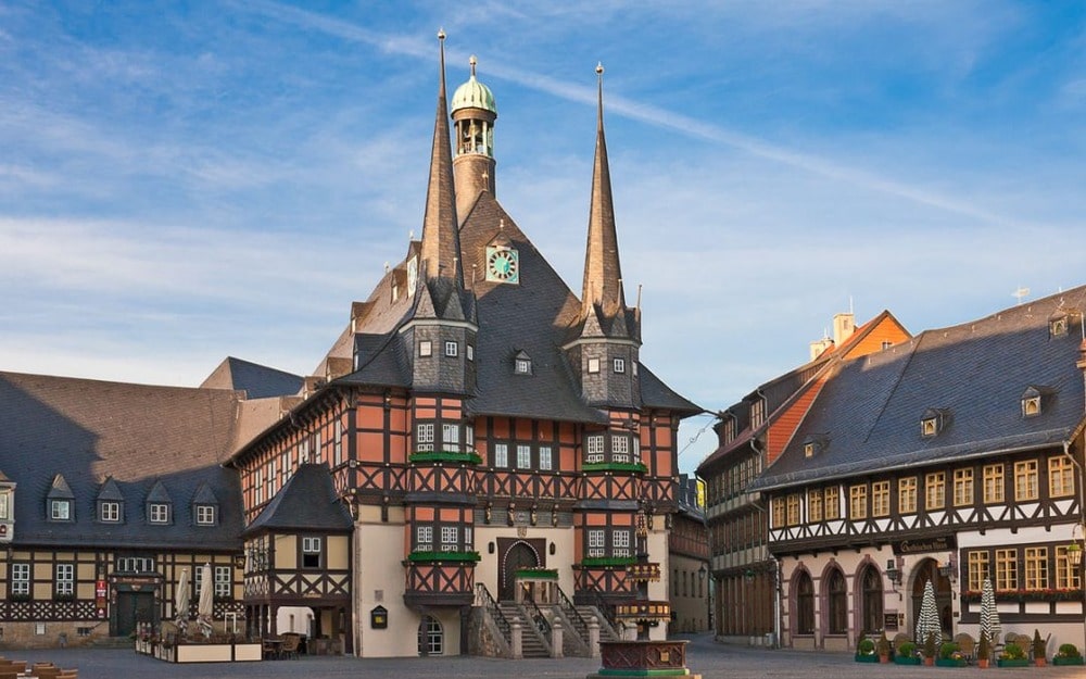 Yerel anıtlar listesine bulunan ve Avrupa’nın en güzel belediye binalarından biri olarak kabul edilen Wernigerode Belediye Binası, koyu sarı renkli, çift kuleli, yarı ahşap Gotik tarzıyla gerçekten ilgiyi hak ediyor.