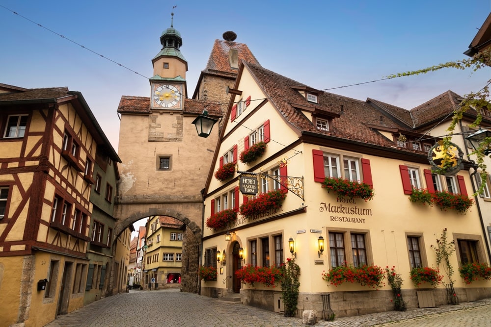 Bu tipik Orta Çağ şehri, Almanya’nın Bavyera eyaletinde Frankonya bölgesinde bulunuyor. Muhteşem güzellikteki pitoresk kasabaları ve kaleleriyle manzaralı bir rota olan Romantik Yol’un bir parçası. Şehir surları, yarı ahşap evleri ve Arnavut kaldırımlı sokaklarıyla Rothenburg’da yürümek bir peri masalına adım atmak gibi. Belediye binası Rathausturm, Orta Çağ evleriyle çevrili ünlü Plönlein Meydanı ve Marktplatz meydanı, Röderbogen Kemeri, Markusturm Kulesi, 1812 yılından bu yana ayakta kalmayı başaran eczane Marienapotheke, Fleisch-und Tanzhaus ve Baumeisterhaus binaları ile dünyaca ünlü Noel alışverişi dükkanı Kathe Wohlfahrt ve Noel Müzesi Deutsches Weihnachtsmuseum