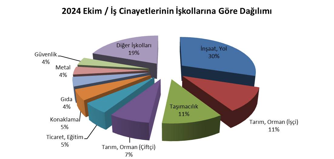 Ekim ayında iş cinayetlerinin işkollarına göre dağılımı.