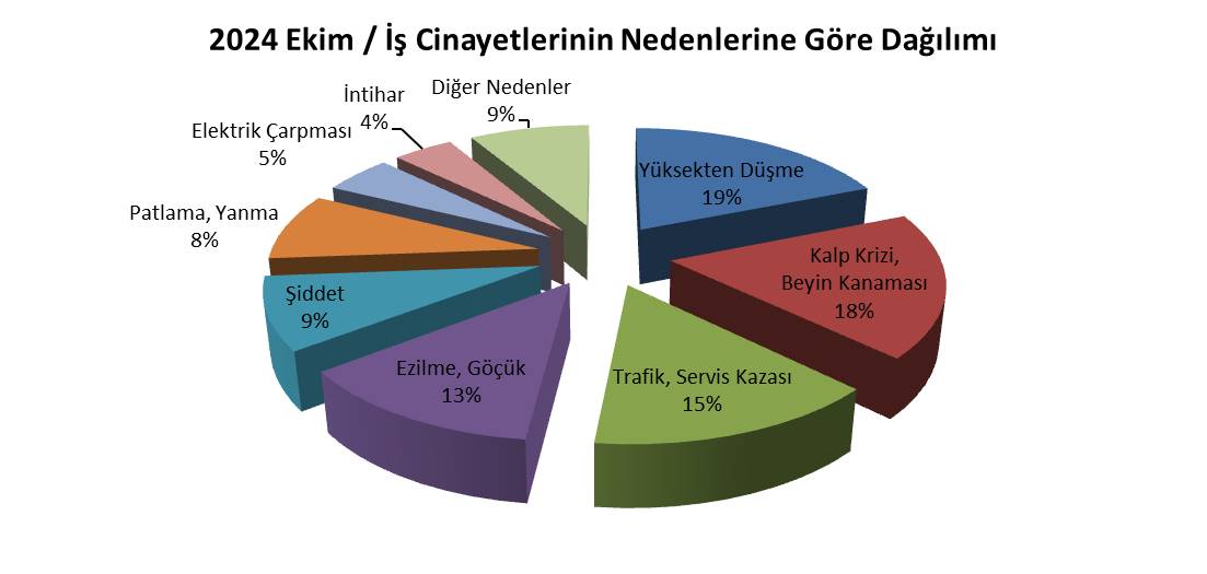 Ekim ayında iş cinayetlerinin nedenlerine göre dağılımı da şöyle: