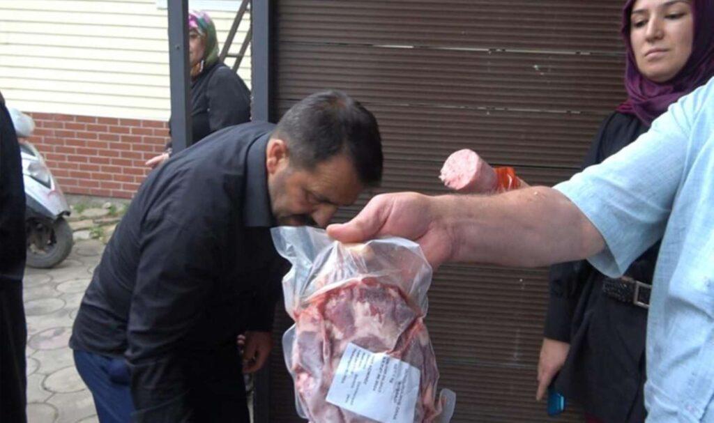 Mağdur olduğunu ifade eden vatandaşlar, “Bize 7 bin 100 liradan 22 kilo gelecek şekilde kurban hissesi sattılar. Buraya hissemizi almak için geldik. Fakat karşılaştığımız manzara burada gördüğünüz. Bu etler sağlıklı değil, içine kıymaları salam gibi paketleyip dondurulmuş şekilde bize verdiler. Kim bilir bu hayvanlar ne zaman kesildi. Bizi resmen dolandırdılar” diye konuştu.