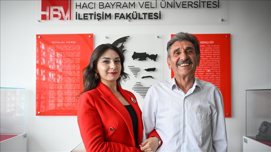 “Babamın bölüme başlayacağından haberi yoktu. Hemen babamın kimlik bilgilerini istedim ve okula kaydını yaptırdım. Ona dedim ki ‘Babacığım hayırlı olsun, sen artık bir gazetecilik öğrencisisin, sen artık bir iletişim fakültesi öğrencisisin’. O da çok şaşırdı, çok mutlu oldu. Artık beraber okuyoruz. Okuldaki ilk günümüzde beraber okula geldik, aynı sıraya oturduk, derslere beraber girme kararı almıştık. Aynı sırada hocalarımızı dinledik. Hocalar başta şaşırdı, anlayamadı. Bu konuda çok fazla olumlu geri dönüş alıyoruz. Babamı tekrar eğitimine başladığı için, beni de onu teşvik ettiğim için tebrik ediyorlar. Şu an babam hem sınıf arkadaşım hem de en yakın arkadaşım. Beraber çalışarak sınavlardan geçmeye devam ediyoruz.”