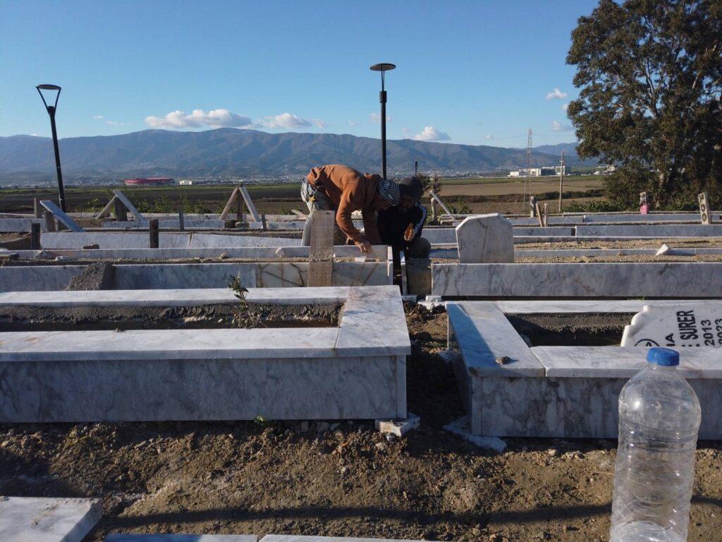 8 bin canın yattığı mezarlıkta ustalar hepsini mermerle kaplamak için çalışıyordu.