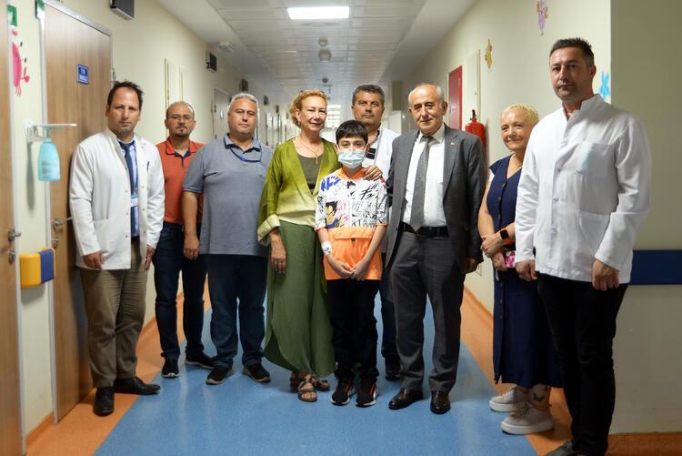 BUÜ Hastanesi Organ Nakli Merkezi’nin yaptığı nakil sayısına dikkat çeken başhekim Prof. Dr. Halil Sağlam ise 1988 yılından bu yana 503’ü kadavradan, 602’si canlı donörden olmak üzere bin 165 böbrek nakli, 2007 yılından itibaren ise 320’si kadavra, 80’i canlı vericiden olmak üzere 400 karaciğer nakli gerçekleştirildiğini belirtti. Emirhan Aydemir’e yapılan organ naklinin ise özel bir yer tuttuğunu belirten Prof. Dr. Sağlam, “Çok nadir olarak karşılaşacağımız bir durum olarak, akraba olmayan bir donörümüzün yani vericimizin olması harika bir haberdi ve bizleri çok sevindirmişti. Dolayısıyla bundan dolayı Yasemin hanımı gönülden kutluyoruz. Ona çok teşekkür ediyoruz. Örnek bir davranış sergiledi. Umarım ki toplumumuzun tamamına örnek olacaktır” diye konuştu.