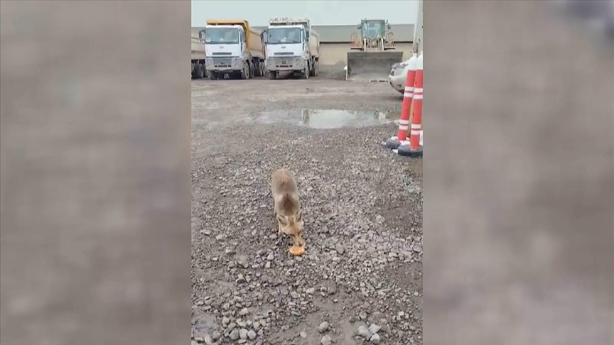 Kayarcık Mahallesi’ndeki termik santralin inşaat şantiyesindeki işçiler çalışma yaptıkları sırada bir tilkiyle karşılaştı.