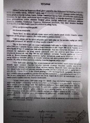 Ancak işin skandal kısmı daha sonra başladı. Bu tutanaktan yaklaşık 1,5 ay sonra aynı Edirne Başsavcısı Muhammet Savran Fatih Aslan’ın sicil notuna övgüler düzdü.