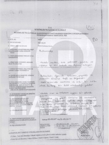 İhbar mesajından sonra Başsavcı Savran’ın altında imzası bulunan Fatih Aslan’ın sicil notu.
