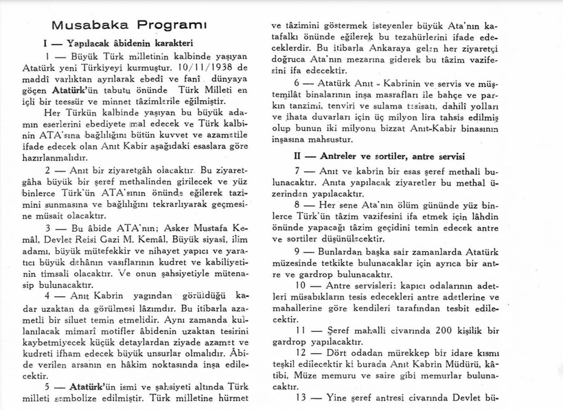Bildiride, “Büyük Türk Ulusunun kalbinde yaşayan Büyük Adam’ın eserlerini ebediyete mal edecek olan Anıtkabir, aşağıdaki esaslara göre hazırlanmalıdır” denerek bazı maddeler sıralandı.