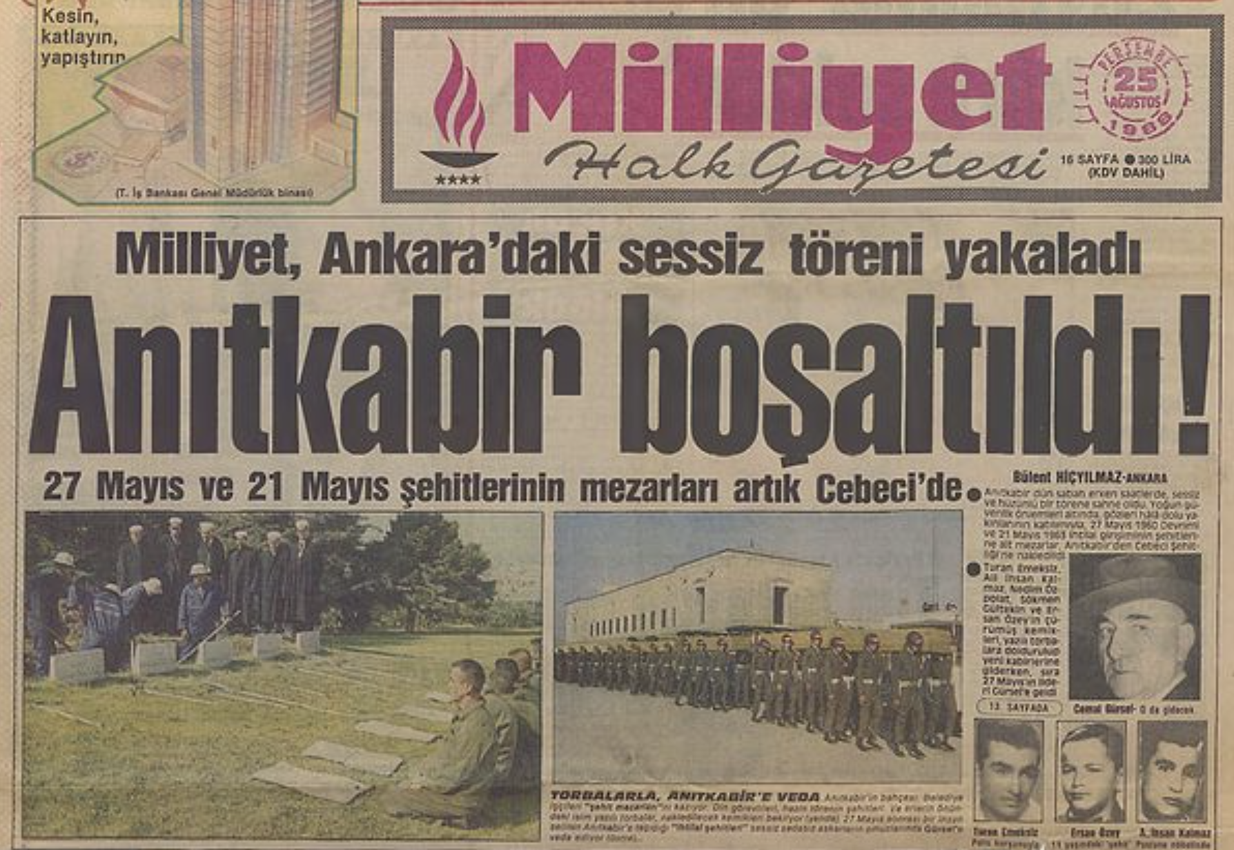 20-21 Mayıs 1963 ayaklanması sırasında hükümete bağlı askerlerle protestocular arasındaki çatışmalarda ölen bir albay, bir binbaşı ve dört er de Anıtkabir’e defnedildiler.
