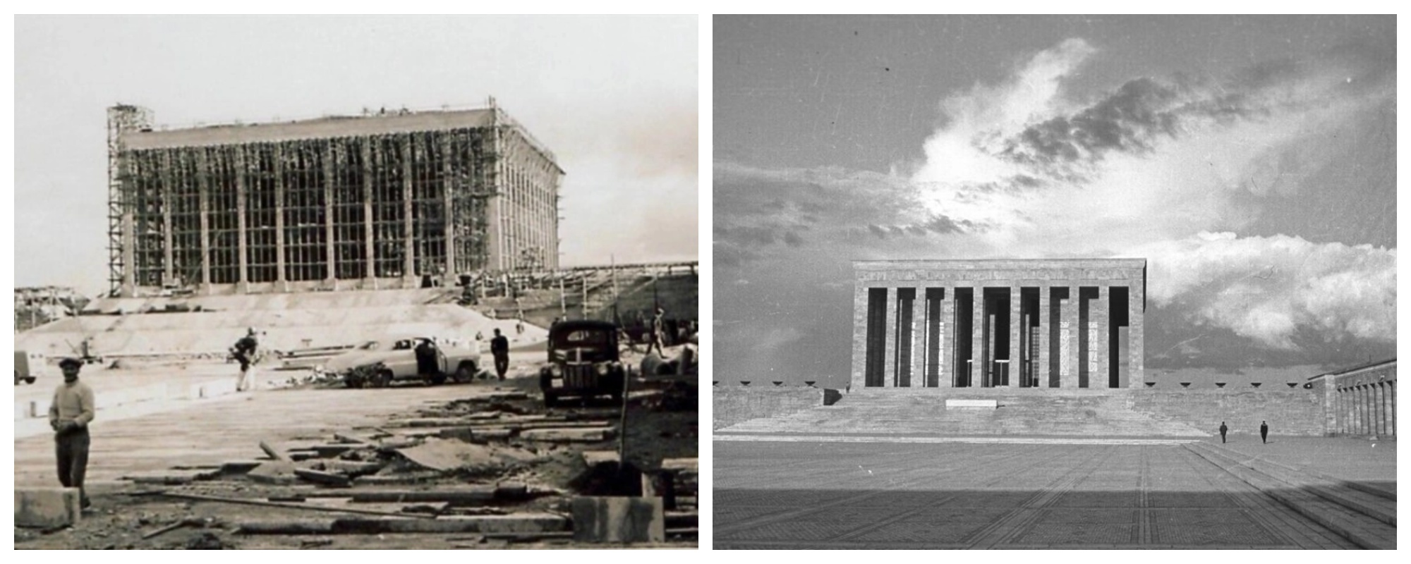 Anıtkabir’in inşaat sırasında ve tamamlandıktan sonraki genel görünümü.