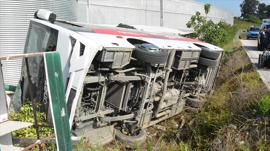 Fatih K. idaresindeki 07 AVN 799 plakalı tur midibüsü Manavgat’ta, Gündoğdu Mahallesi Yörük Mustafabey Bulvarı’nda kontrolden çıkarak yol kenarına devrildi.