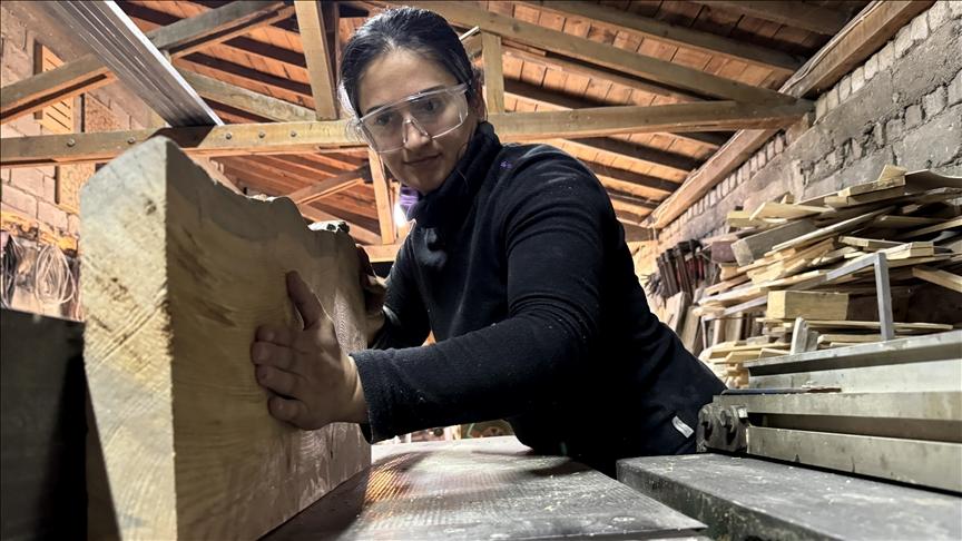 Nevşehir’de eşiyle kurduğu atölyede 6 yıldır marangozluk yapan Fatma Yoldaş, ustalaştığı mesleğini başarıyla sürdürüyor. Tornadan spirale farklı aletleri kullanarak ahşap eşya ve aksesuar üreten Fatma Yoldaş, atölyede yoğun mesai yapıyor. (Behçet Alkan – Anadolu Ajansı)