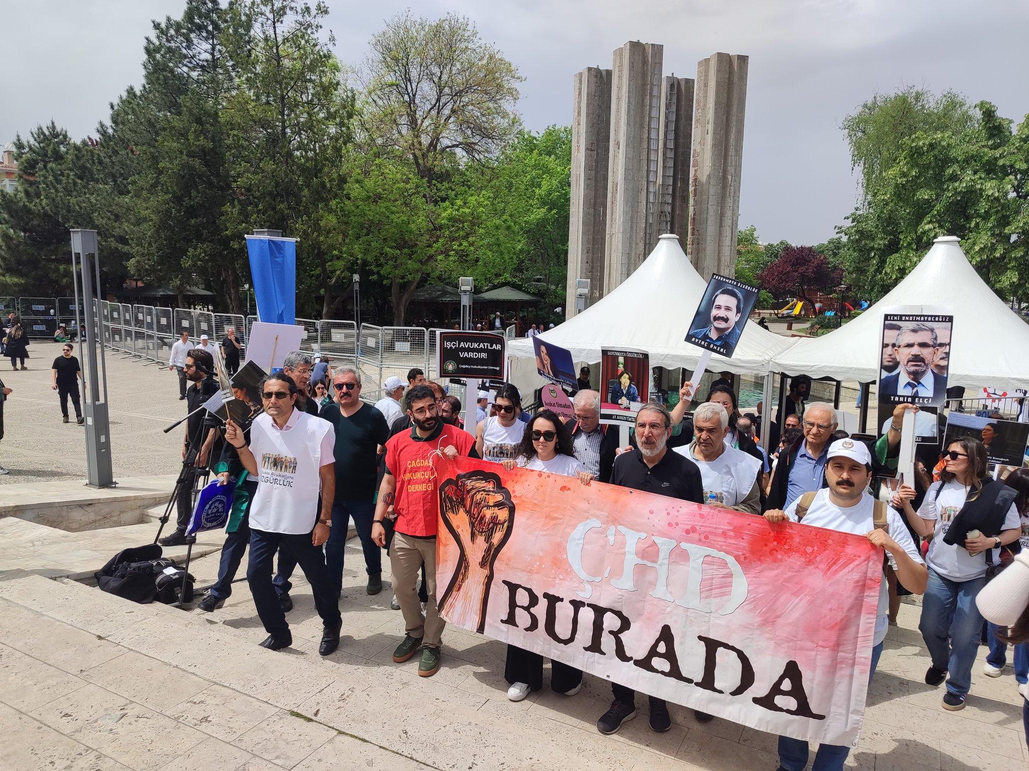 Avukatlar, Ankara'daki Anıtpark'ta 'Büyük Savunma Mitingi' düzenledi. Anayasa ve AİHM kararlarının uygulanmasını isteyen avukatlar, ekonomik sorunlarla boğuştuklarını anlattı.