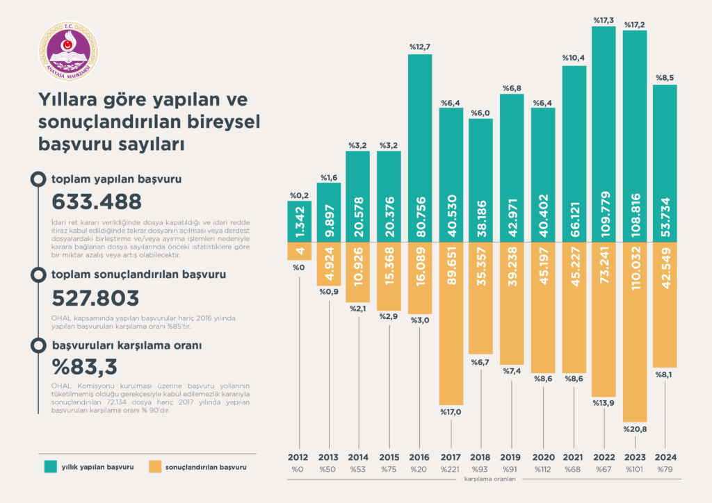 Buna göre belirtilen dönemde Anayasa Mahkemesine 633 bin 488 bireysel başvuru yapıldı, 527 bin 803’ü sonuçlandırıldı.