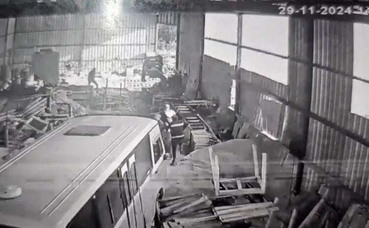 İş yerinde çalışan altı kişi minibüsün altında kalmaktan son anda kurtuldu. Makineleri ve istiflenen ahşap malzemeyi minibüsle deviren O.Ç. hızla olay yerinden uzaklaştı.