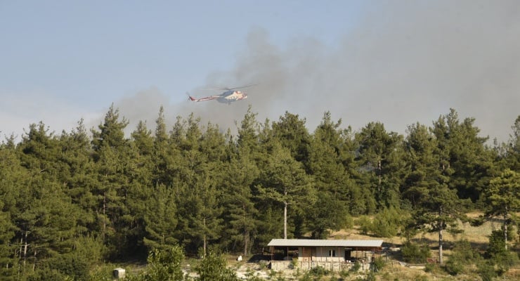 Yangına bir helikopter, üç uçak ve karadan da 10 arazöz, dört su ikmal aracı, beş ilk müdahale aracı, iki dozer ve 100 personel müdahale ediyor.