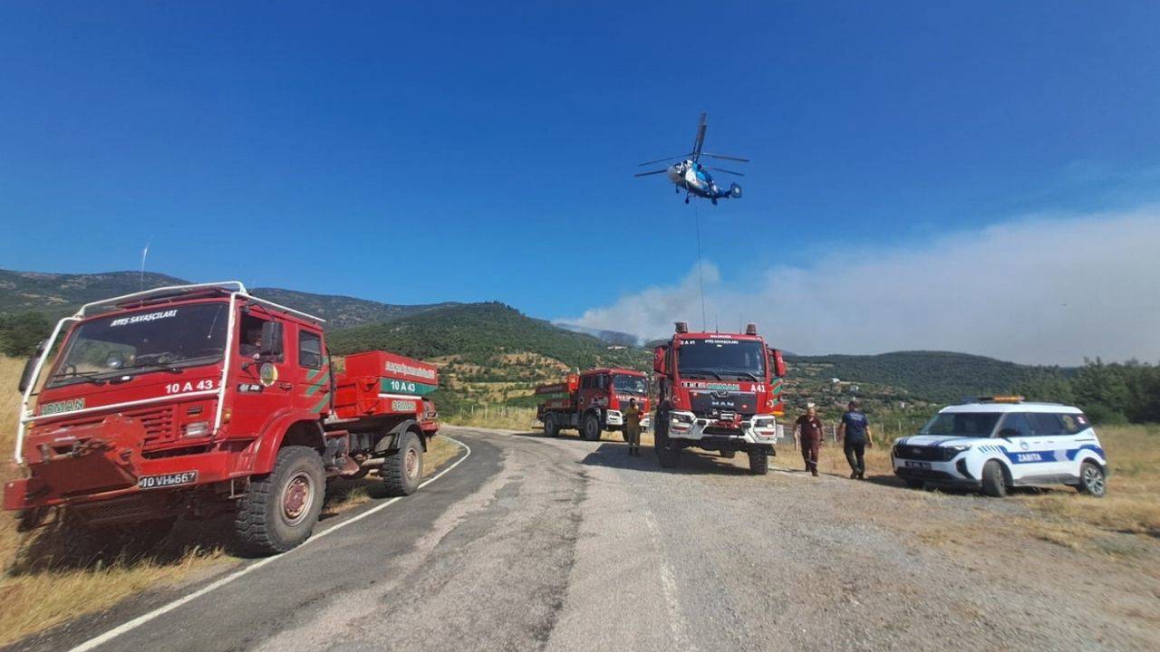 İhbarla bölgeye 1 uçak, 1 helikopter, 23 arazöz, 5 su ikmal aracı, 8 ilk müdahale aracı, 8 hizmet aracı, 2 dozer, 1 greyder, 2 treyler ile 150 personel sevk edildi. Havanın kararmasıyla alevlere hava müdahalesi sonlandırılırken, gece boyunca karadan müdahale devam etti.