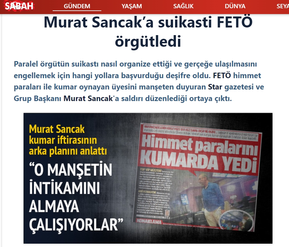 Olayın ardından başta Sabah gazetesi olmak üzere birçok medya kuruluşu Sancak’a yapılan saldırının arkasında FETÖ’nün olduğuna dair haberler yayımladı.