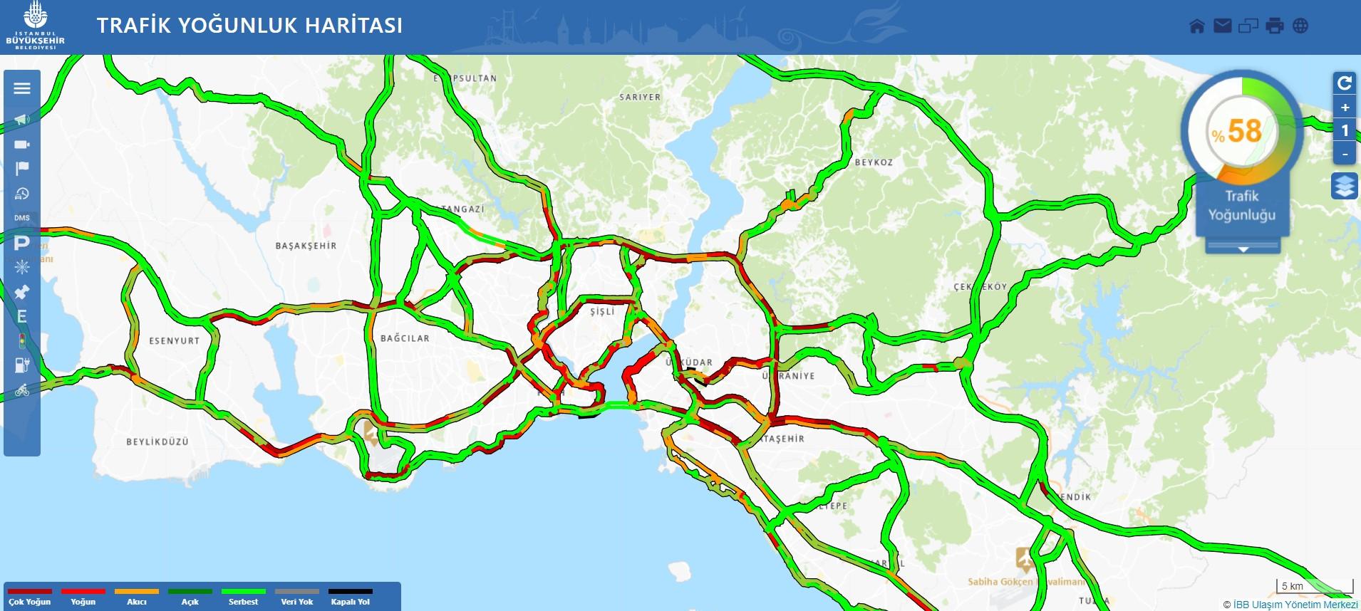 Perşembe günü saat 17.07’de İstanbul’da trafik yoğunluğu.