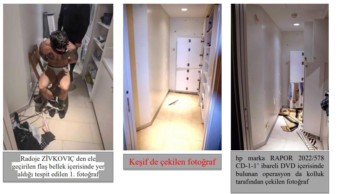 Rodoje Zivkovic’in flaş belleğinde yer alan işkencenin yapıldığı yerle villada keşif günü çekilen fotoğrafların karşılaştırıldığı raporda “Villada Radoje Zivkovıç’den ele geçirilen flaş bellek içinde yer aldığı tespit edilen fotoğrafta taban kaplama fayansların dikdörtgen olduğu, çamaşır odasının taban fayanslarının kare olduğu, çamaşır odasının koridor kısmı ve çamaşır odasının karşı oda taban kaplama fayanslarının dikdörtgen olduğu, flaş bellek içinde yer aldığı tespit edilen fotoğraftaki taban kaplama yapısı ile uyum gösterdiği, Radoje Zivkovıç’den ele geçirilen flaş bellek içerisinde yer aldığı tespit edilen fotoğraf ile 6 Kasım tarihinde Zekeriyaköy’deki villada çekilen fotoğraflar arasında morfolojik yöntem kullanılarak yapılan karşılaştırmalı incelemede bilirkişi heyetimizce aynı yer olduğu kanaati hasıl olmuştur” dendi.