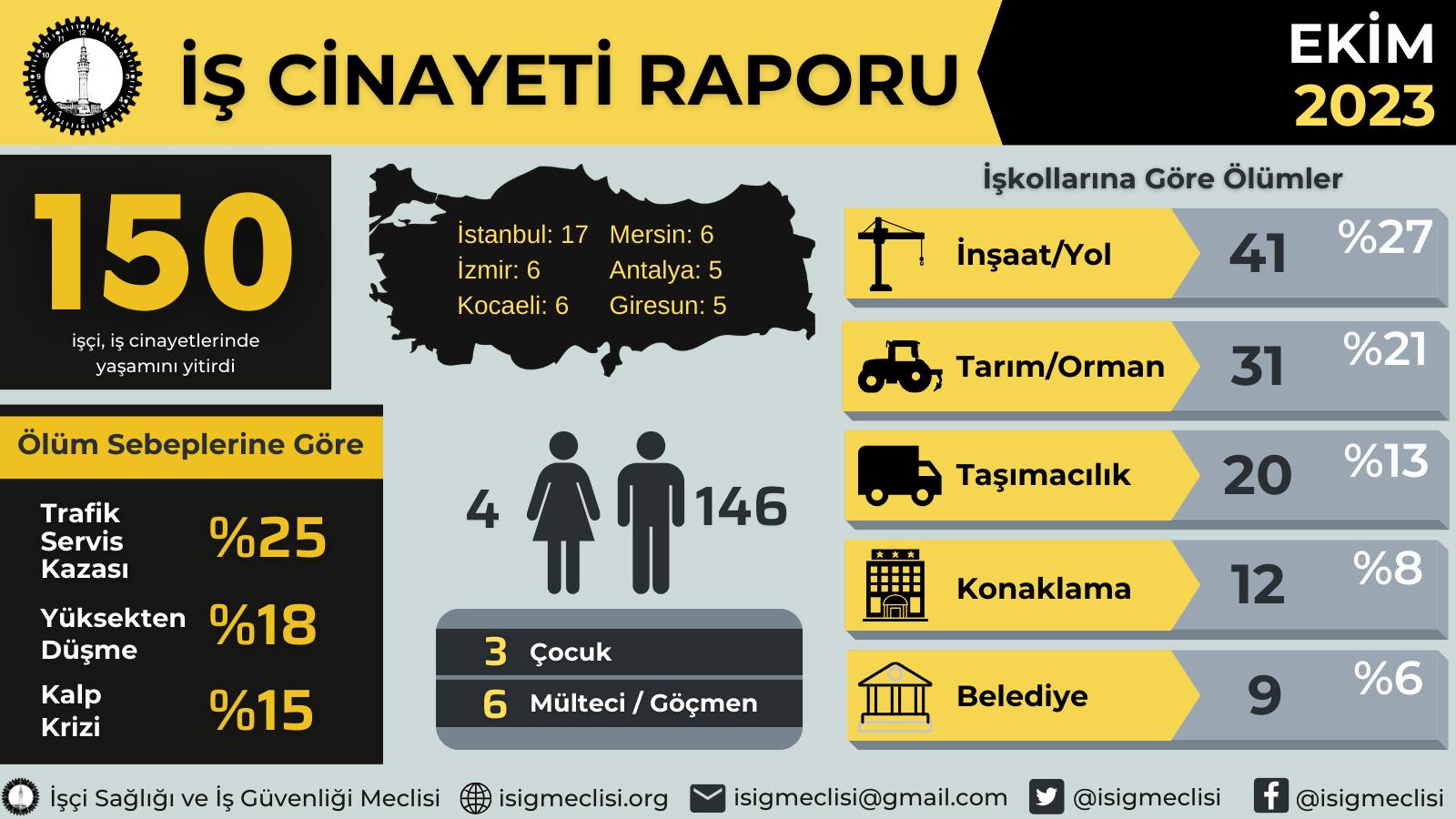 İş Sağlığı ve Güvenliği Meclisi’nin raporuna göre, sadece Ekim ayında Türkiye’de iş kazalarında 150 kişi hayatını kaybetti.