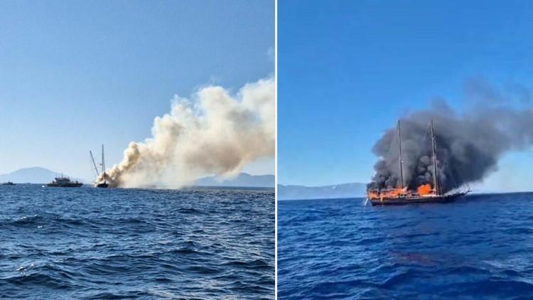 Muğla'nın Bodrum ilçesinde, 27 metre uzunluğundaki 'My Lover' isimli gulet teknede yangın çıktı. 8 Polonyalı turist ile 5 personel tahliye edilirken, yanan tekne battı.