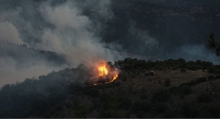 Balıkesir’in Dursunbey ilçesine bağlı Bayıryüzügüney Mahallesi’yle Bursa’nın Büyükorhan ilçesine bağlı Düğüncüler köyü yakınlarındaki ormanlık alanda yangın çıktı.