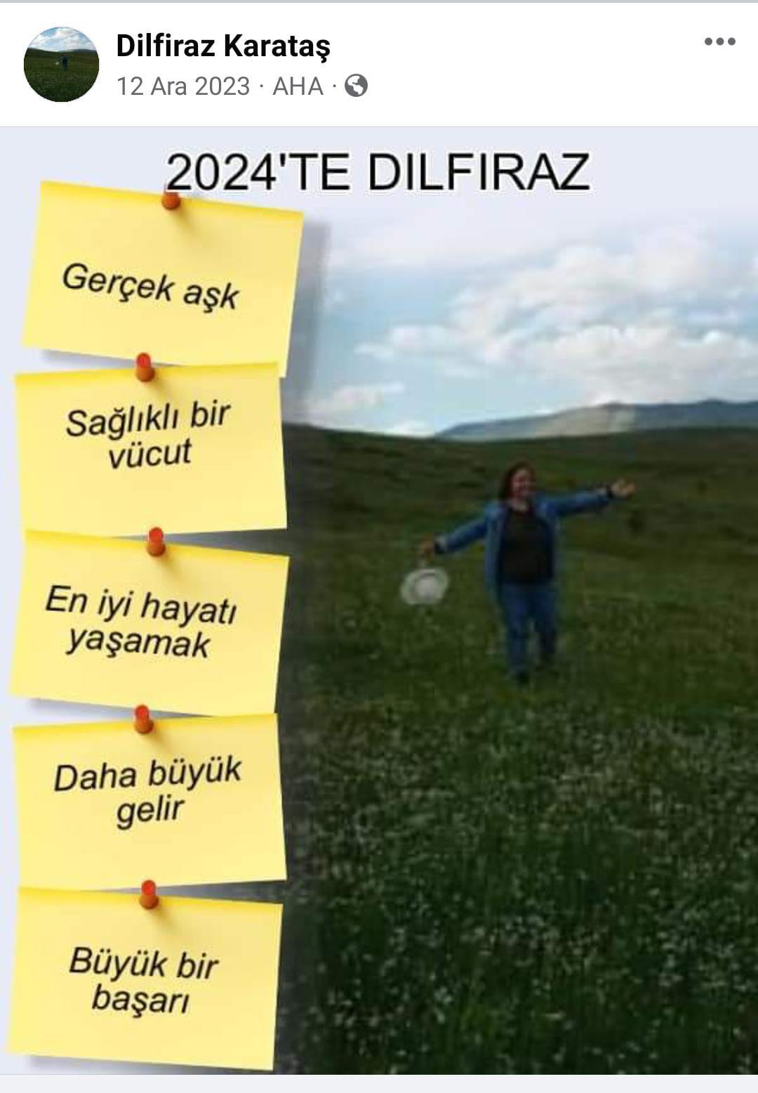 Dilfiraz Karataş sosyal medya hesabından 2024 yılına ilişkin beklentilerini paylaşmıştı.