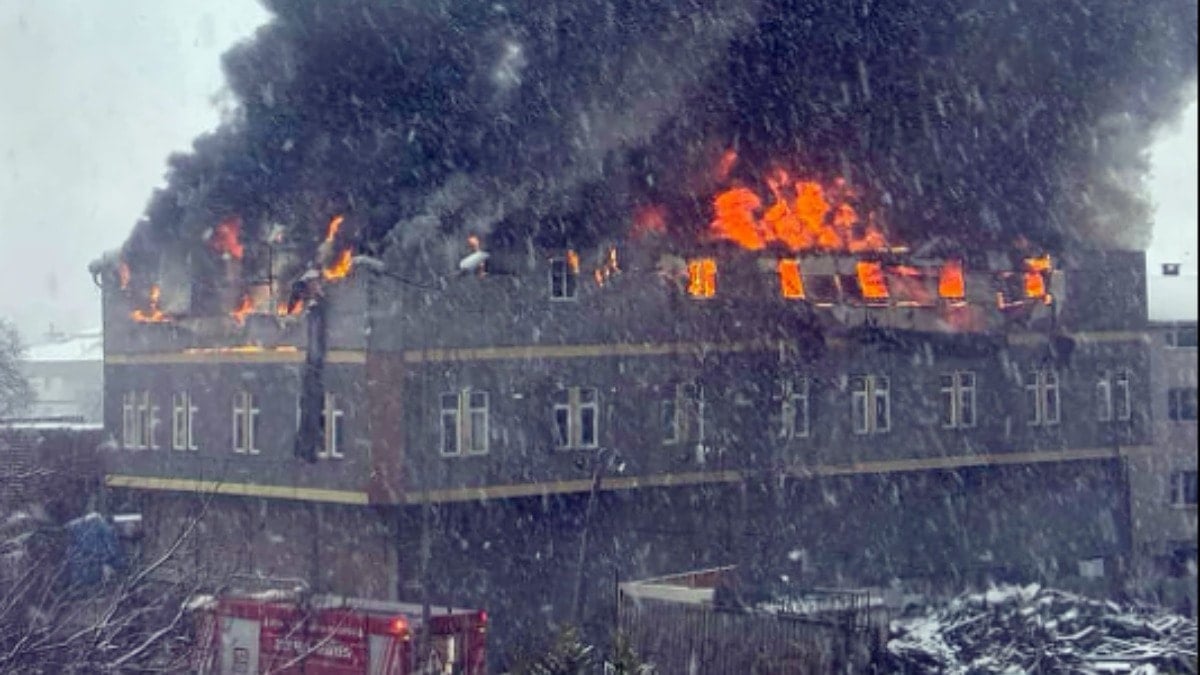 Yangın nedeniyle gökyüzünü siyah duman kapladı.